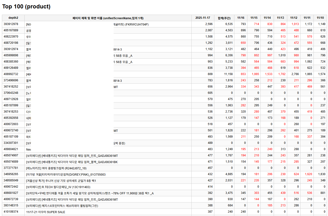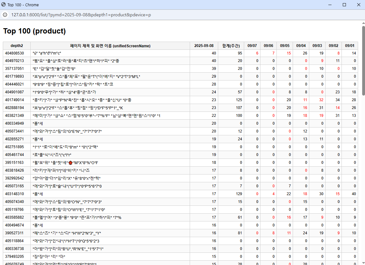 ❖ 상품별 방문 분석 ✔️ 상품 방문 추이 ✔️ Top 100 1주간 추이 ✔️ Top 10 2주간 추이 및 예측 |