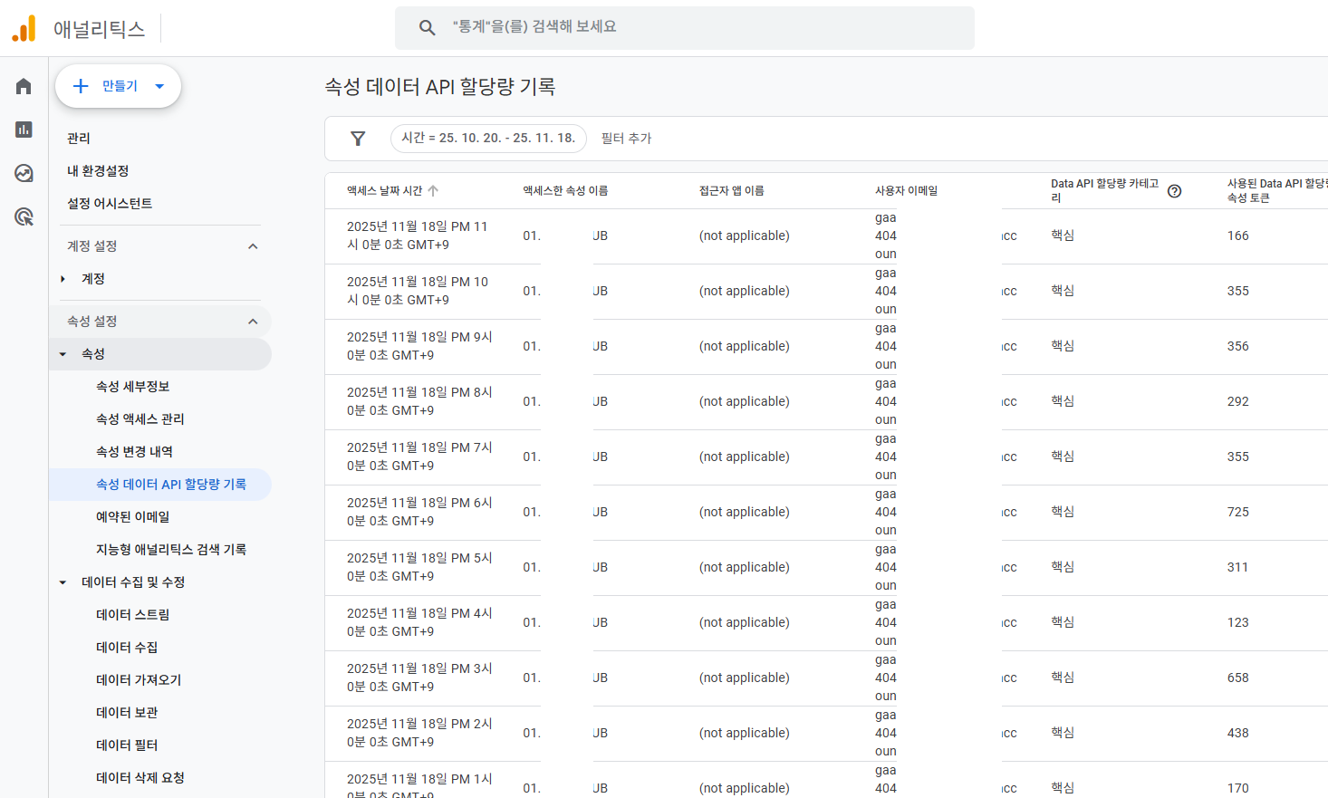 ❖ API를 통한 데이터 수집 ✔️ View 권한 부여로 준비 완료 ✔️ Google에 비용 발생 없음 (BigQuery 제외) ✔️ API 사용량(할당) 조회 가능 (GA 관리자 화면) ✔️ 160만 PV 기준 53토큰 사용 (무료 토큰:20만/일) |